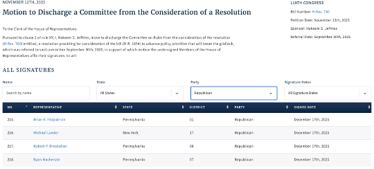 [Clerk of the U.S. House of Representatives, Discharge Petition No. 12, 12/10/25]